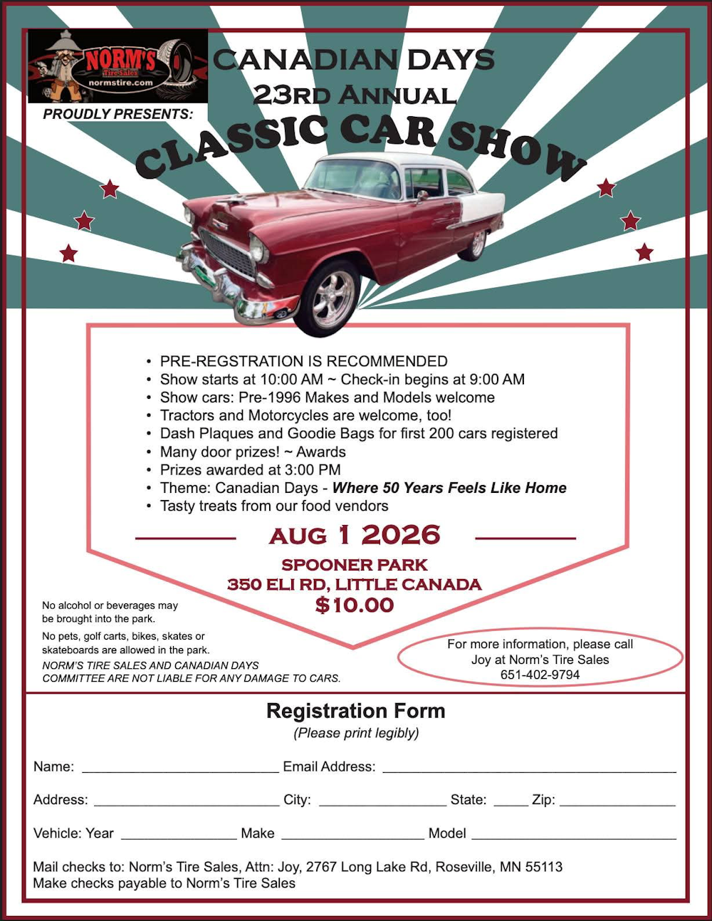 The first car show of the year will be Saturday, June 7, 14, 28, July 5, 19, 28, August 2, 9, 23, September 8, 13, 20(Finale), 2025